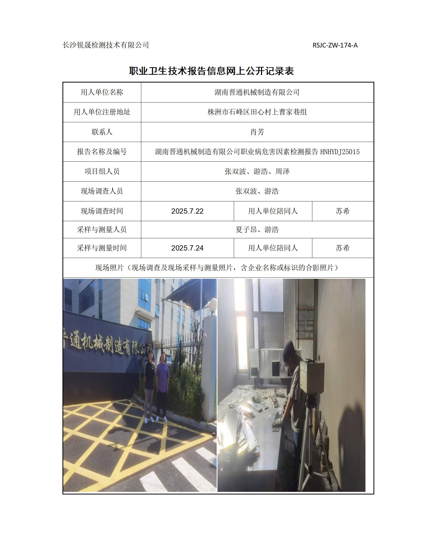 > 职业卫生项目公示 > 职业病危害因素检测报告