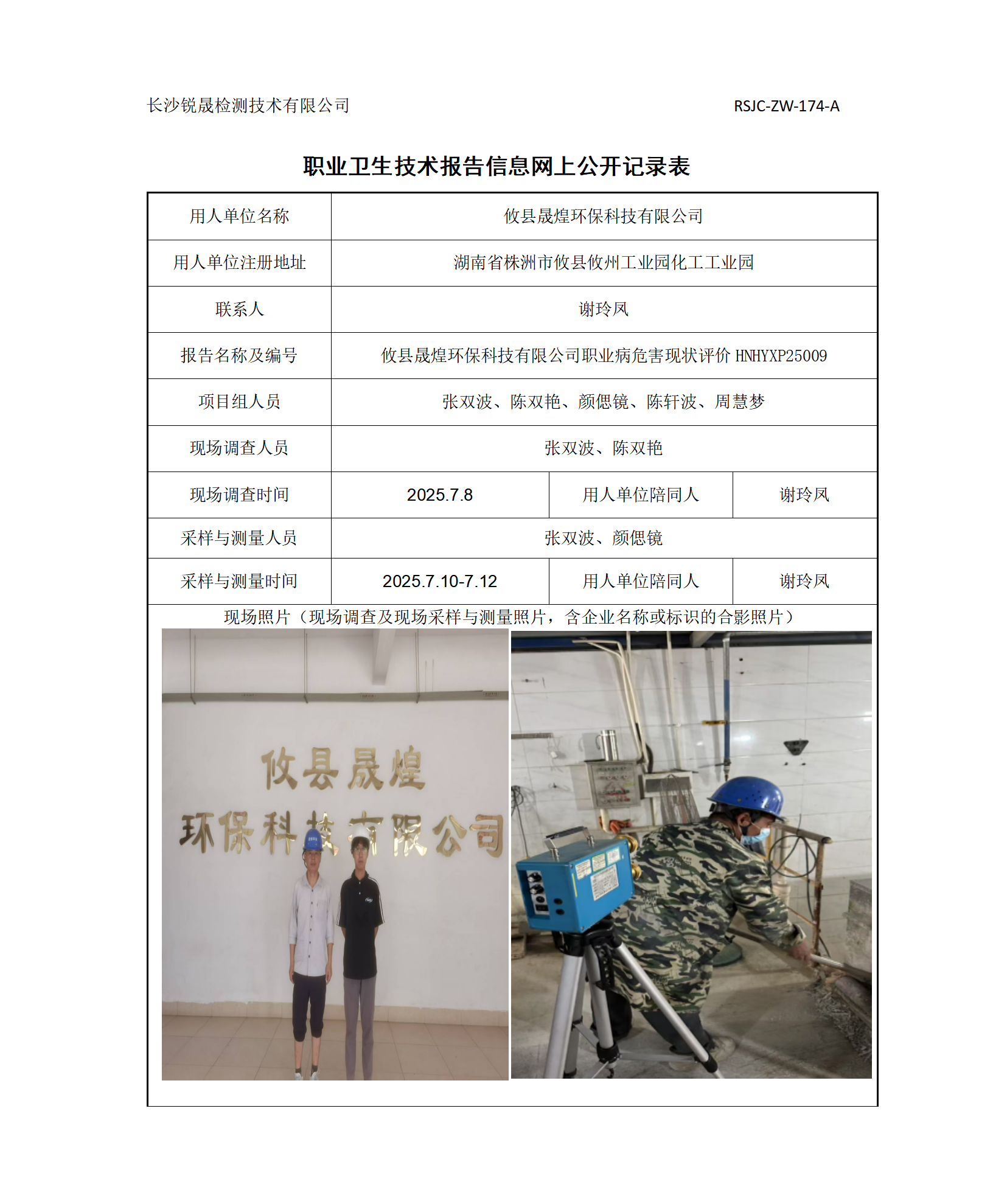 > 职业卫生项目公示 > 职业病危害现状评价