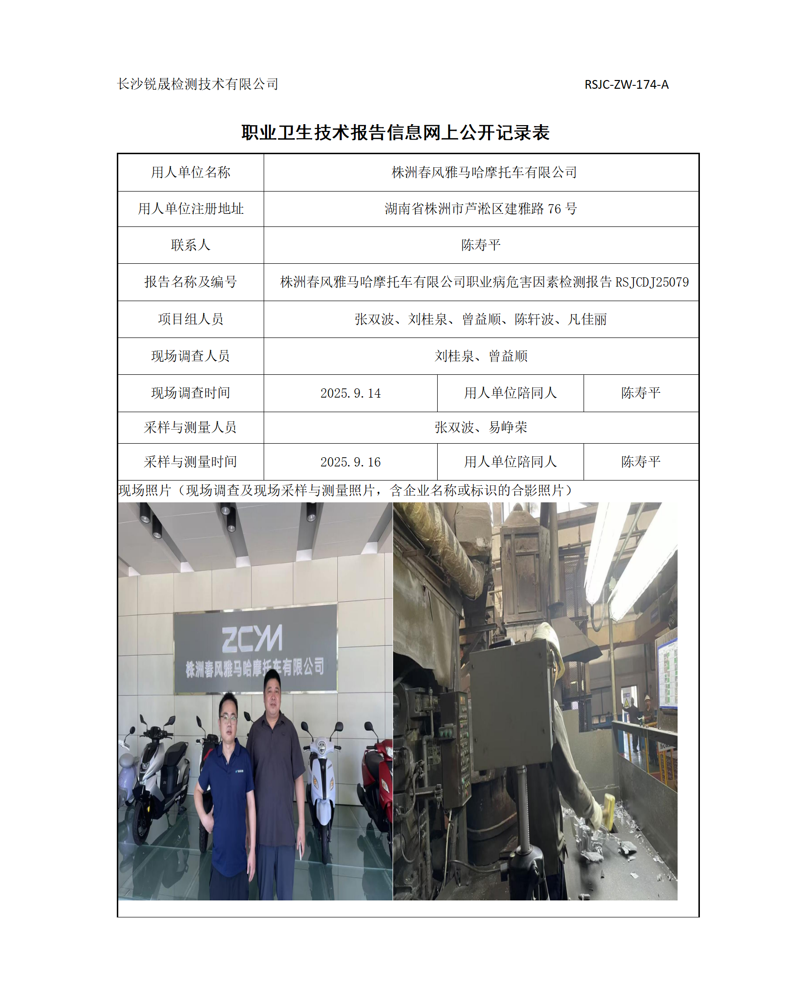 > 职业卫生项目公示 > 职业病危害因素检测报告