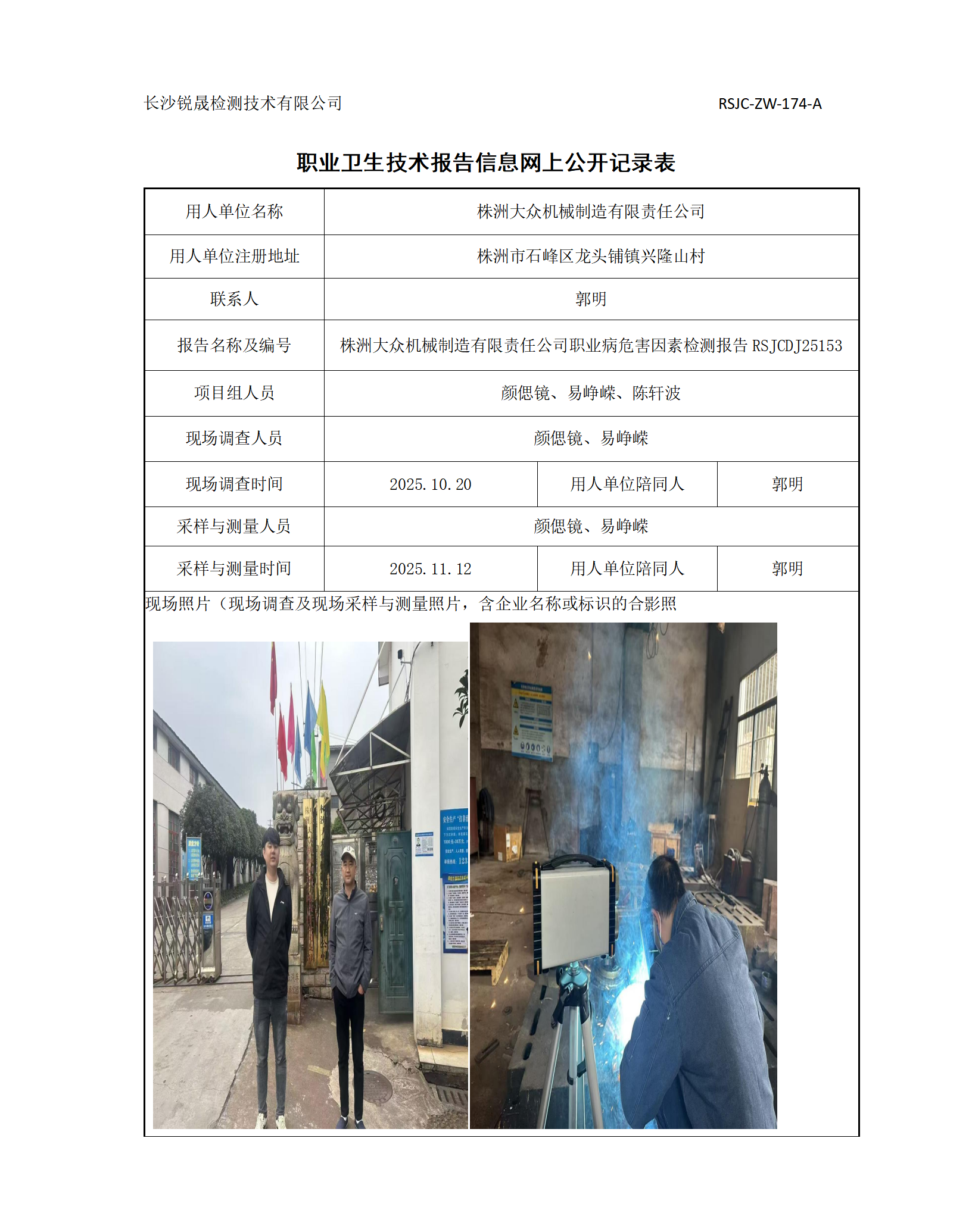 > 职业卫生项目公示 > 职业病危害因素检测报告