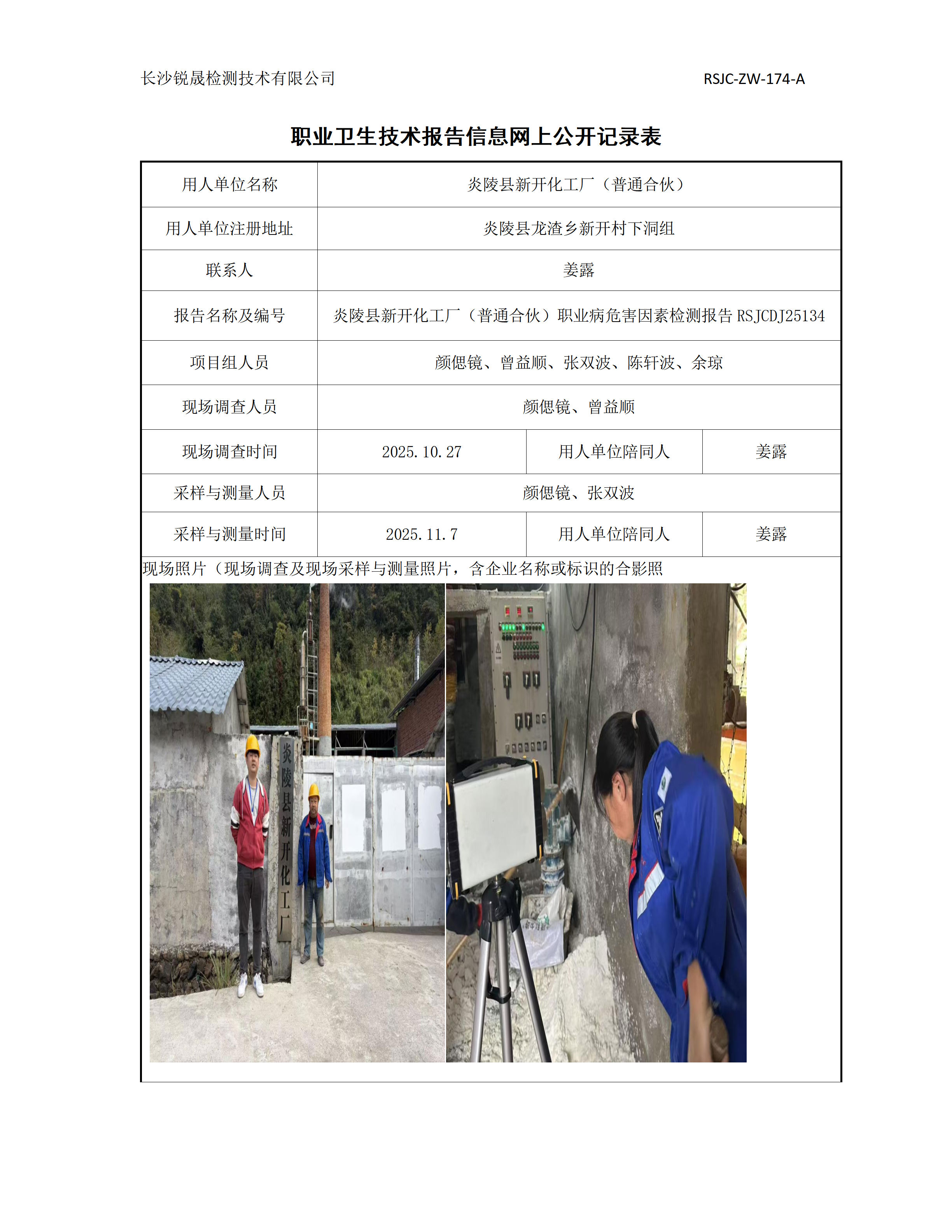 > 职业卫生项目公示 > 职业病危害因素检测报告