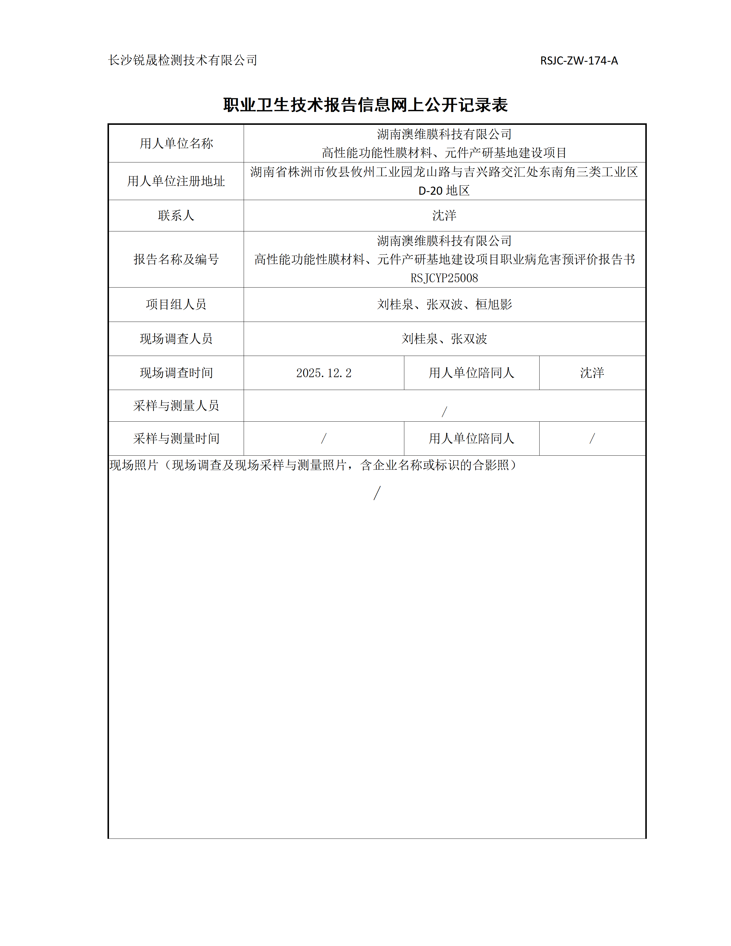 湖南澳维膜科技有限公司 高性能功能性膜材料、元件产研基地建设项目