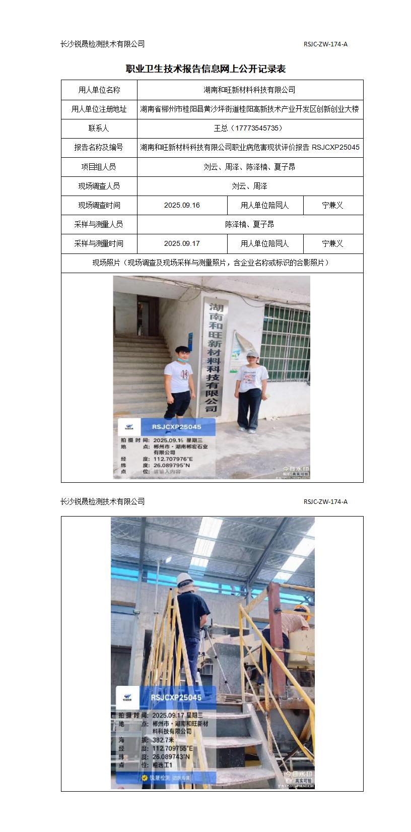 湖南和旺新材料科技有限公司职业病危害现状评价