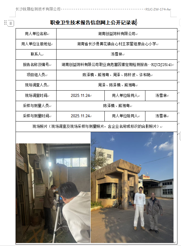 湖南创益饲料有限公司职业病危害因素检测报告